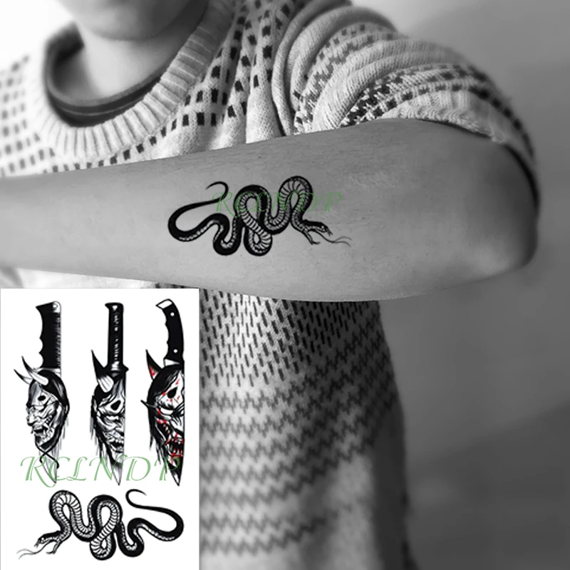 Waterproof Temporary Tattoo Sticker Devil Monster Knife And Snake Fake Tatto Flash Tatoo Big Size Tattoos For Women Men Temporary Tattoos Aliexpress